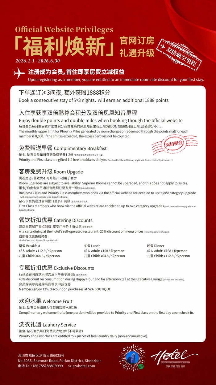 入住享获享双倍鹏尊会积分及双倍凤凰知音里程